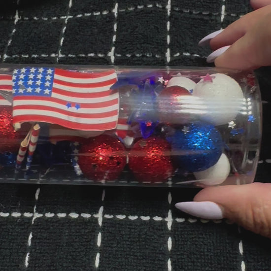 Shake up your holiday spirit with our limited-edition 4th of July Shaker Bottle — the ultimate fusion of function and patriotic flair! Covered in bold red, white, and blue stars, miniature glitter spheres, and festive American flags, this eye-catching bottle turns every 4th into a celebration!